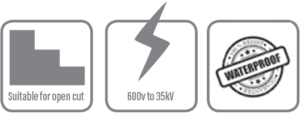de plugues de cabos elétricos e componentes usados em minas de carvão e polimetálicas, subterrâneas ou a céu aberto, bem como em projetos de escavação de túneis.